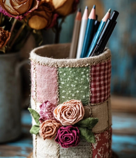 制作步驟: 將一次性紙杯徹底清洗干凈,晾干水分,這一步可以確保后續(xù)制作的衛(wèi)生和牢固性。 用剪刀將紙杯剪成你喜歡的形狀,比如波浪邊、鋸齒邊等,增加花籃的獨(dú)特性。 開(kāi)啟熱熔膠槍(若使用白乳膠,可用小刷子涂抹),將麻繩的一端粘在紙杯底部邊緣,然后一圈一圈緊密地纏繞在紙杯外面,每纏繞一圈都要確保麻繩與紙杯充分粘合,讓花籃更加堅(jiān)固耐用。 當(dāng)麻繩纏繞到合適高度后,用剪刀剪斷麻繩,并用熱熔膠固定末端。 若想要讓花籃更加美觀,可以用熱熔膠將蕾絲絲帶粘貼在麻繩表面,或者在花籃邊緣粘貼一些小裝飾,如彩色珠子、亮片等,讓它成為家中獨(dú)特的裝飾品 。 完成后的編織花籃可以放在客廳收納遙控器、小零食袋;放在臥室收納頭繩、發(fā)夾等小飾品;放在書房收納便簽紙、回形針等文具 。它不僅能有效收納雜物,還能為家居環(huán)境增添一份自然、溫馨的氛圍 。 (二)布藝筆筒 / 化妝刷桶